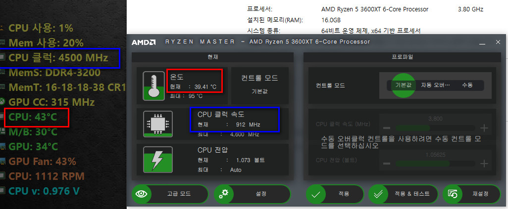 라이젠 CPU 온도, 전압, 클럭 등이 AIDA 등 시스템 측정 도구에서 높게나오는 오류가 있는데